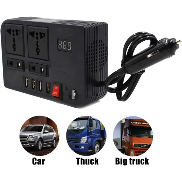 اینورتر 12 ولت خودرو با توان 300 وات، برق 12V DC را به 220V AC تبدیل میکند و دارای 4 پریز برق، 4 پورت USB، فن خنککننده هوشمند، اتصال فندکی و سیستمهای ایمنی کامل است؛ مناسب سفر، خودرو، کامیون و کمپینگ.
