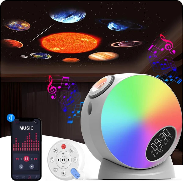 صدای سفید تسکین دهنده: این پروژکتور با داشتن نویز سفید داخلی به شما کمک می کند تا با صداهای محیطی آرام بخش خود را به خوابی آرام برسانید.