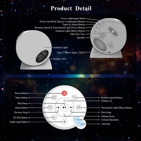 صدای سفید تسکین دهنده: این پروژکتور با داشتن نویز سفید داخلی به شما کمک می کند تا با صداهای محیطی آرام بخش خود را به خوابی آرام برسانید.