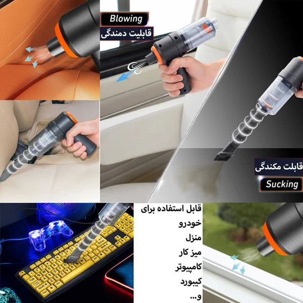 اگر به دنبال یک جارو شارژی برای خودرو و ماشین تان هستید این پیشنهاد عالی را به شما می دهیم، محصولی بی نظیر و با قدرت فوق العاده تولید کشور چین که دارای مخزن با گنجایش عالی و مکش بالا برای تمیز کردن سریع داخل ماشین کاربرد دارد.این جارو دو قابلیت مکندگی و دمندگی دارد این جارو شارژی ماشین قابل حمل دارای دو سری می باشد که به قسمت مکنده متصل می شود که یکی برای قسمت هایی مانند بین صندلی که دسترسی به آن سخت است طراحی شده و سری دیگر دارای فرچه برای گردگیری از موکت زیر پا و بیرون کشیدن خاک و مو طراحی شده است که بسیار کاربردی می باشد. برای شارژ کردن این دستگاه می توانید سری USB را به شارژر موبایل یا شارژر فندکی ماشین وصل کنید و سر دیگر آن را به دستگاه متصل کنید تا شارژ کامل شود و از آن تا ساعت ها استفاده کنید. جاروبرقی چند منظوره – این جاروبرقی قابل حمل نه تنها عملکرد جاروبرقی را دارد، بلکه عملکرد گرد و غبار و دمنده هوا را نیز دارد. هنگام استفاده از عملکرد خلاء، لوازم جانبی مختلفی برای پاسخگویی به نیازهای سناریوهای مختلف وجود دارد. با قرار دادن نازل هوا در پشت جاروبرقی، می توان آن را به بادگیر و دمنده برای تمام نظافت و نیازهای روزانه شما تبدیل کرد. جاروبرقی کارآمد – طراحی بی سیم و قدرت مکش 6000 پاسکال به شما این امکان را می دهد که گرد و غبار، موهای حیوانات خانگی، شن و ماسه، باقیمانده غذا، مقدار کمی مایع و چیزهای مختلف پنهان شده در کوسن ها یا مبل ها را در هر زمان و هر مکان به راحتی تمیز کنید. باتری لیتیومی داخلی 1200 میلی آمپر می تواند نیاز شما را پاسخگو باشد. لوازم جانبی کاربردی فوق العاده – علاوه بر لوازم جانبی مختلف نازل هوا، این جاروبرقی اتومبیل علاوه بر این شامل فیلتر ضد گرد و غبار و یک میله طولی برای دسترسی به قسمت های تنگ بین صندلی ها می باشد. بی سیم و قابل حمل – این جارو شارژی دستی کمتر از 300 گرم وزن دارد. طراحی بی سیم به شما امکان می دهد بدون محدودیت از آن استفاده کنید. زندگی را راحت تر کنید جاروبرقی سایز کوچک برای انواع سناریوها مانند خانه، محل کار و ماشین مناسب است. هنگام استفاده، نویز کمتر از 70 دسی بل است که باعث ایجاد مشکل در صدا نمی شود.