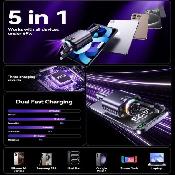 •مناسب برای شارژ موبایل، دوربینهای دیجیتال، GPS، MP3، MP4 و تبلتها